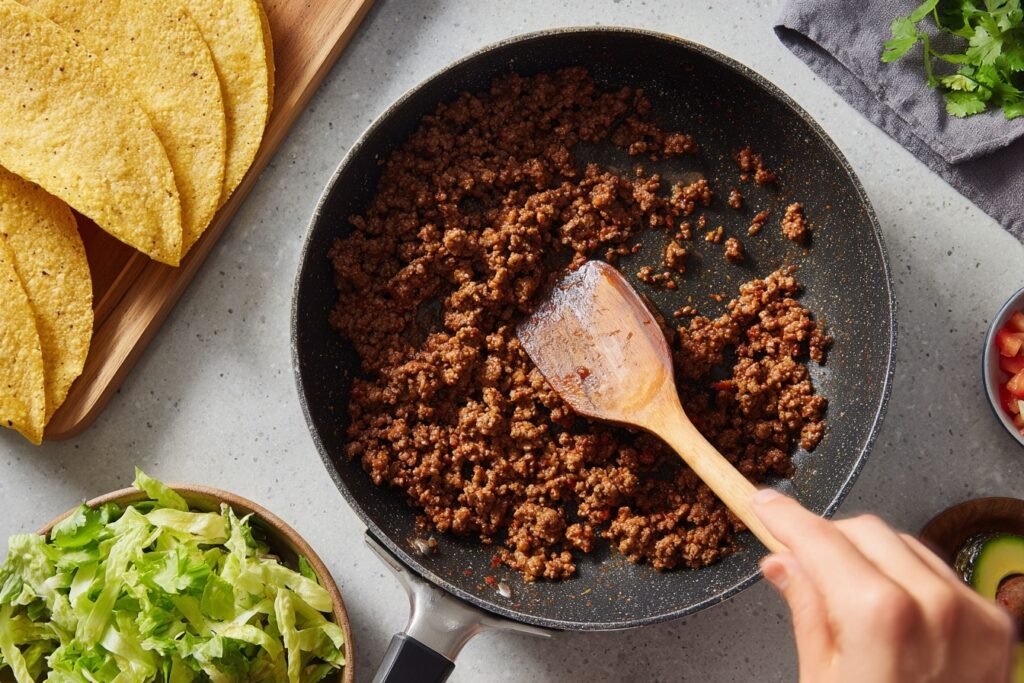 1. Use medium-high heat to brown the beef quickly so it gets caramelized bits — those browned edges add deep, meaty flavor that contrasts beautifully with fresh toppings.