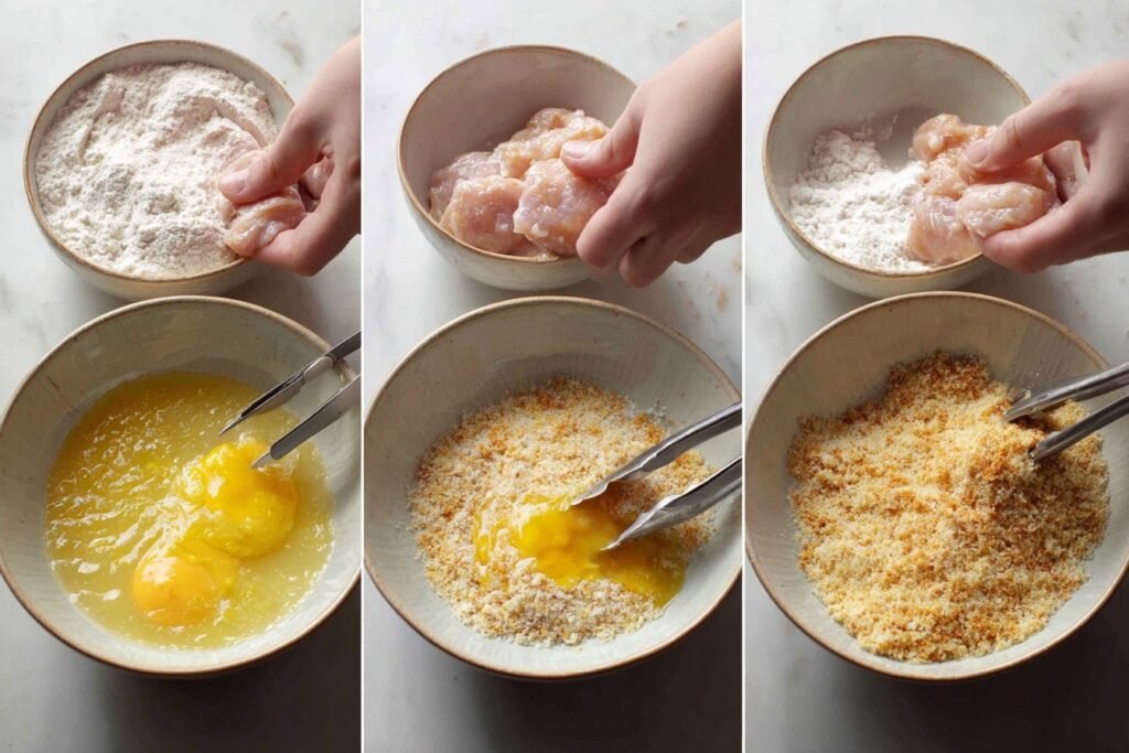2. Oil Temperature is Key: Maintain 350°F—too low makes soggy chicken, too high burns it. Use a thermometer or breadcrumb test for foolproof frying.