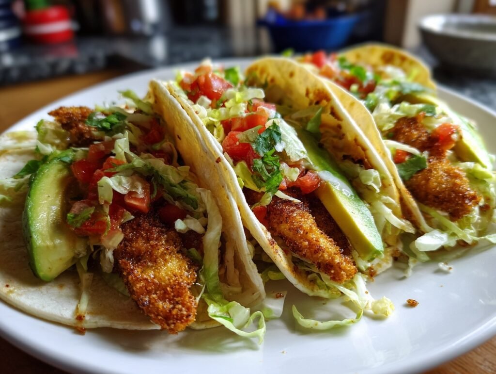 For parties, set up a DIY taco bar—let guests customize with extra toppings like pickled onions or radish slices. Variations keep it exciting: Swap chicken for shrimp (same breading) for seafood tacos, or go veggie with breaded cauliflower florets. Add a dollop of Greek yogurt mixed with cilantro for creamy tang without overpowering the crunch.