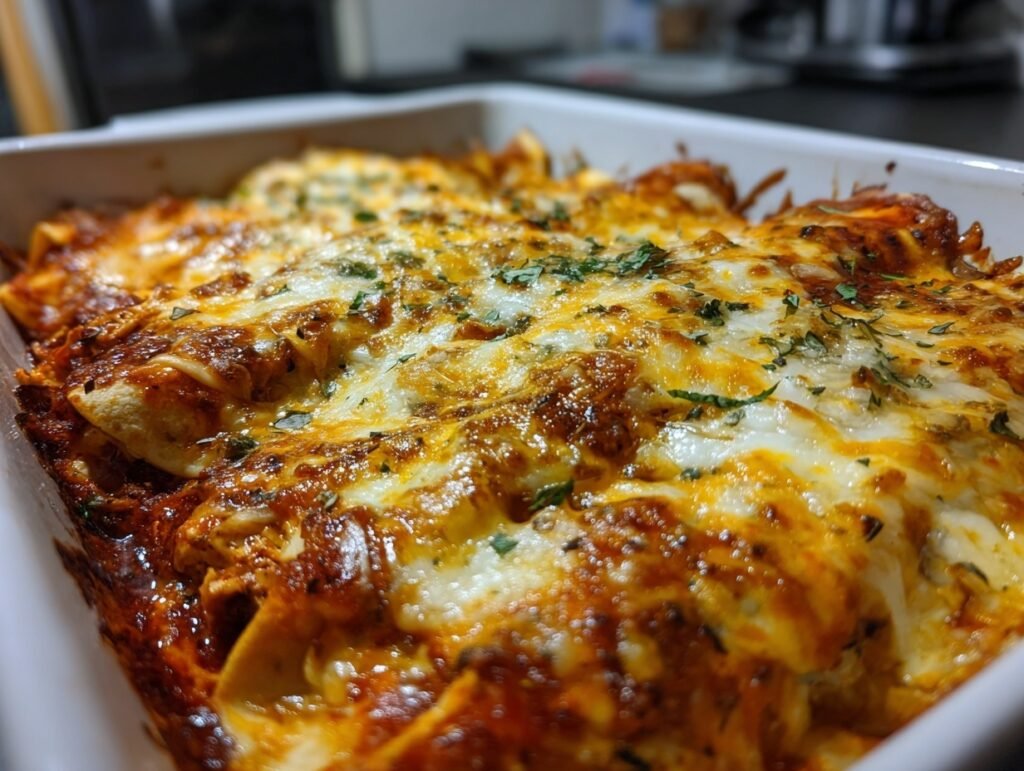 Visually, they’re a stunner: layered tortillas glistening under sauce, cheese bubbling to golden perfection, and customizable toppings that pop with color. Their versatility shines—scale for date nights or parties—and they’re incredibly shareable on Pinterest, sparking “recipe saved!” comments. The wow-factor presentation turns everyday dinners into Instagram-worthy moments, boosting your confidence in the kitchen.