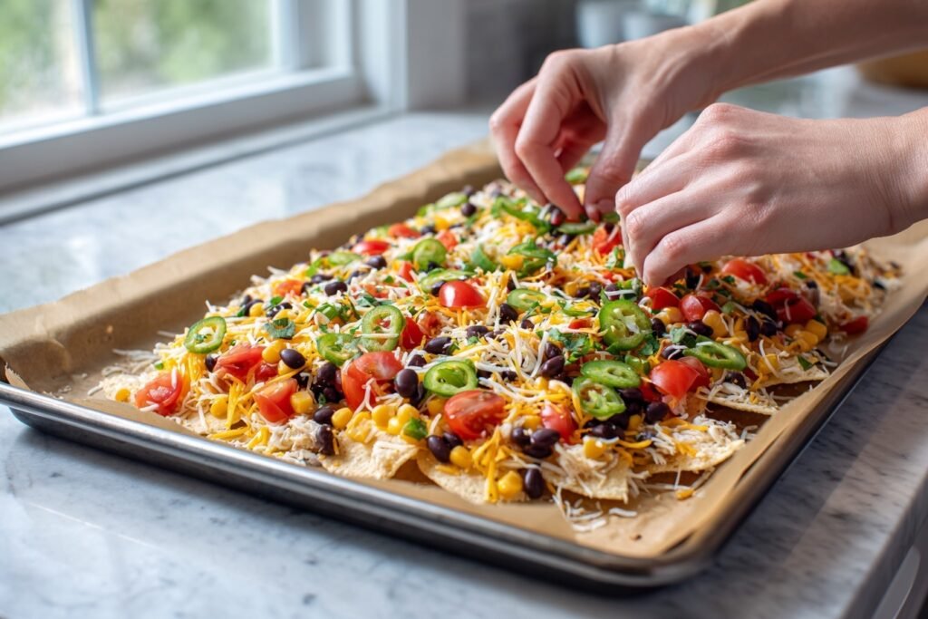 3. Layer strategically: Start with chips, then proteins and veggies, finish with cheese. This ensures even melting and prevents toppings from sliding off.