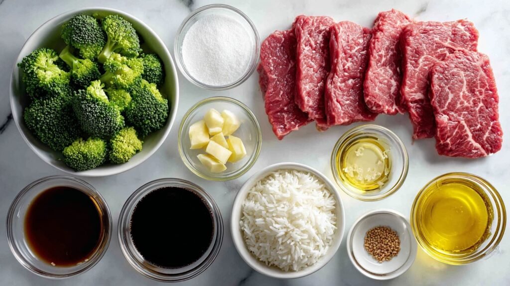 Fresh, straightforward ingredients build a restaurant-style sauce while keeping textures vibrant. Thinly sliced sirloin browns quickly, broccoli florets retain that bright green pop, and bell peppers add color and sweet crunch. A cornstarch-toss gives the beef a silky sheen and helps the sauce cling beautifully.