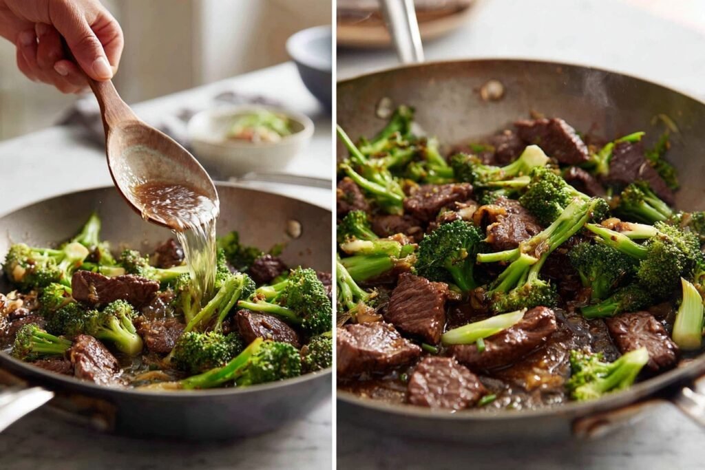 A: Partially: you can slice the beef, make the sauce, and prep vegetables up to a day in advance. Cook just before serving to keep broccoli crisp and beef at peak tenderness.
