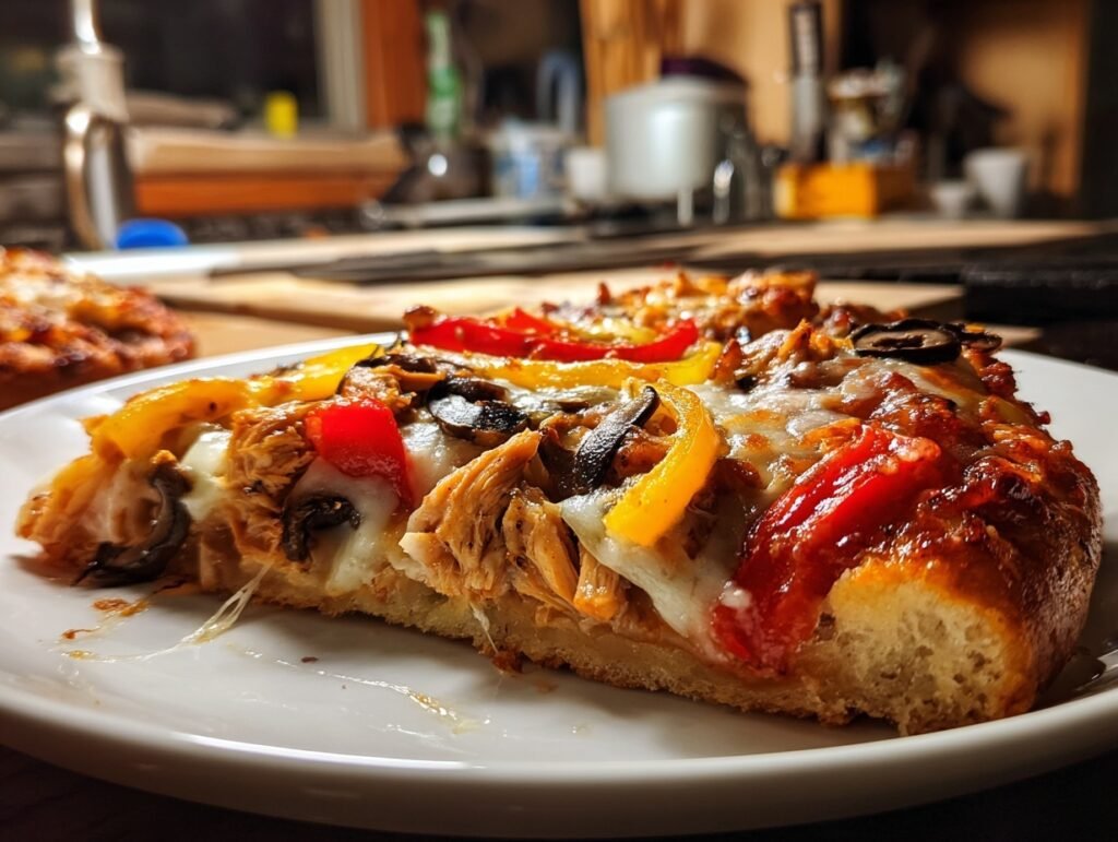 Imagine sinking your teeth into a slice of Chicken Crust Pizza (Easy Low Carb Recipe) where the crust cracks just right—crisp, golden, and packed with savory shredded chicken that releases a burst of juicy flavor. The air fills with the irresistible aroma of melted mozzarella bubbling over vibrant bell peppers, earthy mushrooms, and briny olives, all kissed by Italian herbs and a hint of garlic. It’s cheesy perfection that tastes like your favorite takeout but feels light and guilt-free, with every bite delivering that satisfying pizza crunch without the heavy carb load.