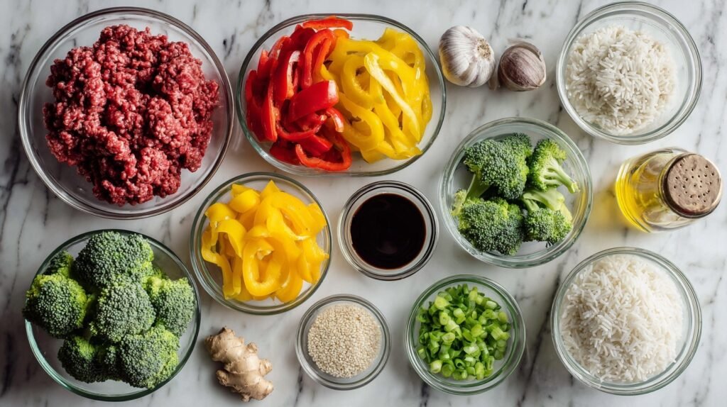Get ready to channel your inner stir-fry master! These steps for Spicy Ground Beef Stir-Fry Bowl with Garlic Veggies & Steamy Rice are foolproof, turning simple ingredients into a glossy, restaurant-style bowl. Follow along, and you’ll nail crispy veggies, juicy beef, and that irresistible sauce every time. Your kitchen will smell amazing—let’s dive in!